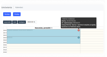 Możliwość wydruku zaplanowanych wizyt – zbiorczo lub pojedynczo – pozwala lepiej rozplanować dzień w warsztacie. Dzięki temu unikniesz przestojów i możesz w pełni wykorzystać dostępność pracowników. Jasny harmonogram to mniej improwizacji i większa pewność, że każda wizyta przebiegnie zgodnie z planem.